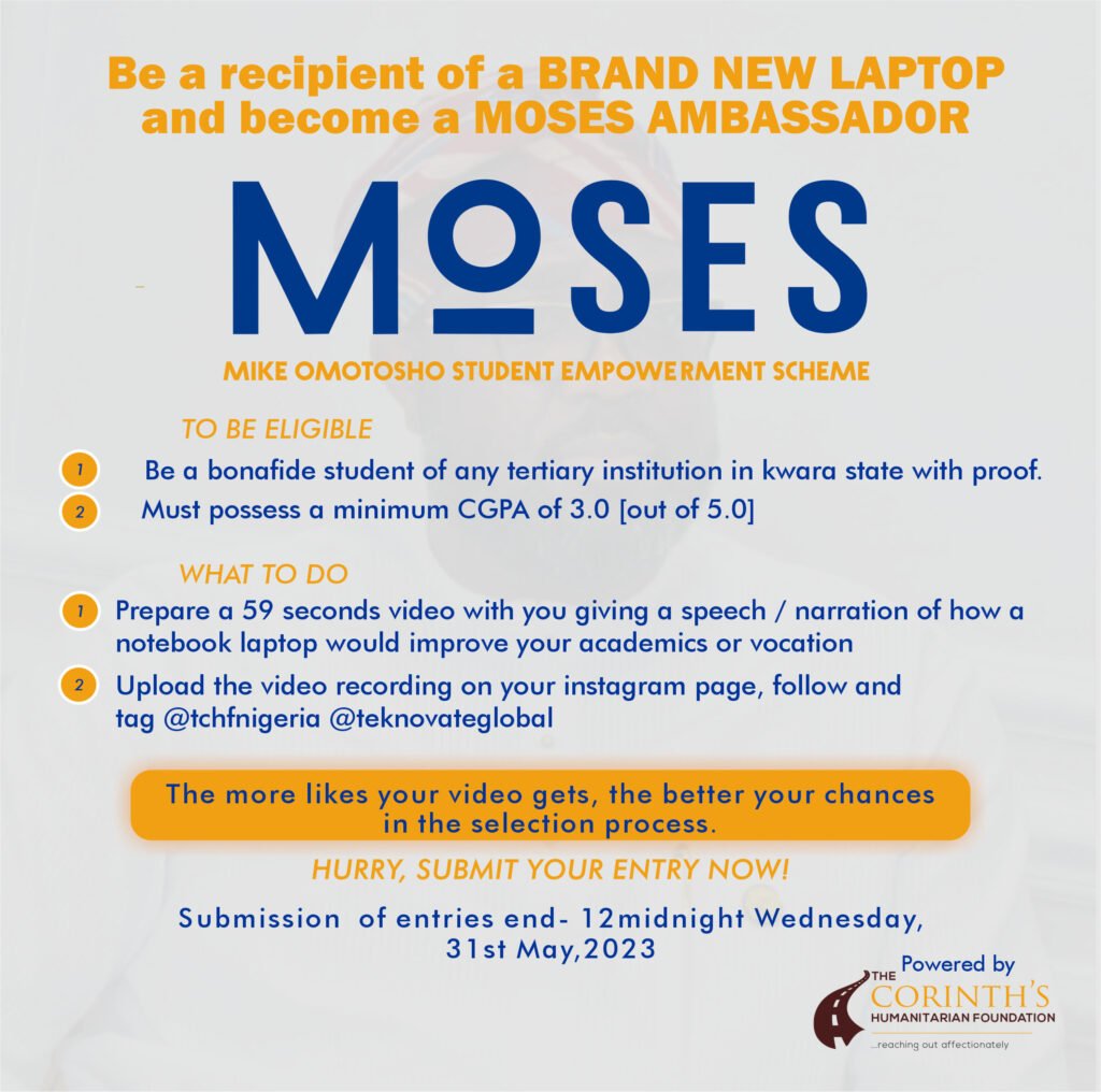 The Mike Omotosho Student Empowerment Scheme is more than just a donation program—it is a commitment to investing in education, fostering self-reliance, and shaping future leaders. By providing students with the right tools to succeed, The Corinth’s Humanitarian Foundation is dedicated to making a lasting impact on education and empowerment.